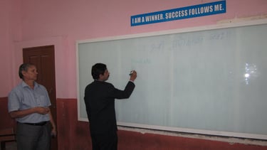 All classrooms were provided with curtains to avoid glare of the day light on the glass boards.