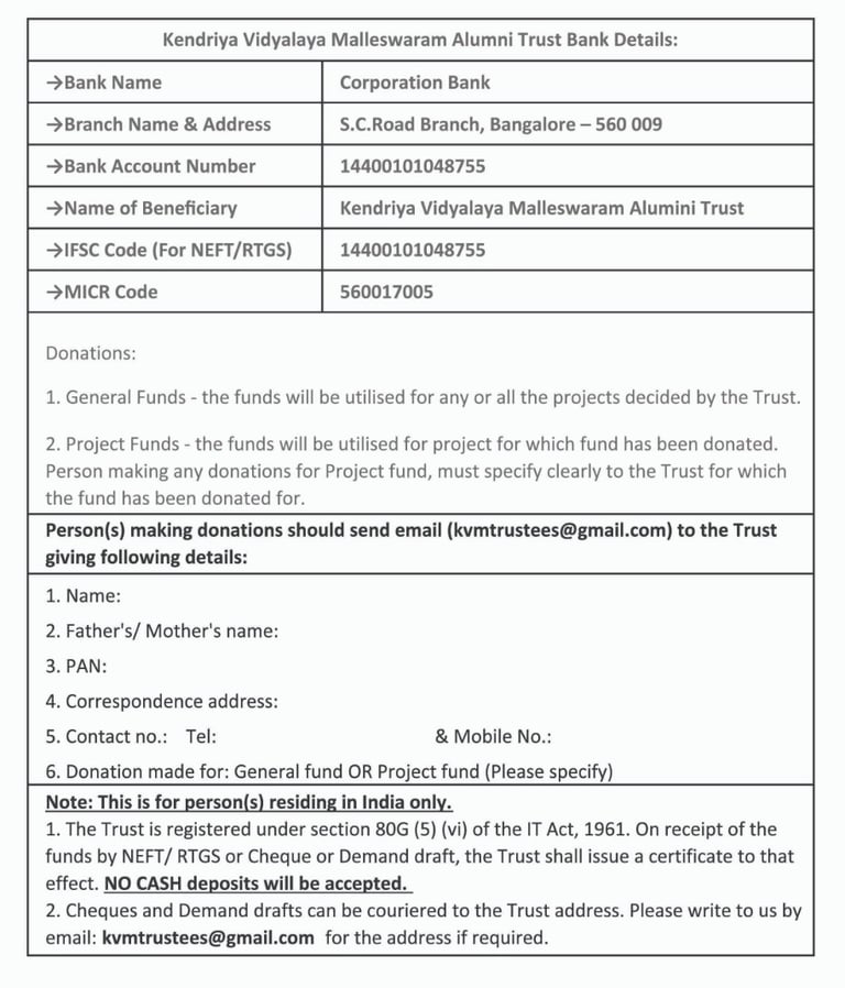 This is the Alumni Association account, no 80G benefits will be given for donations to this account